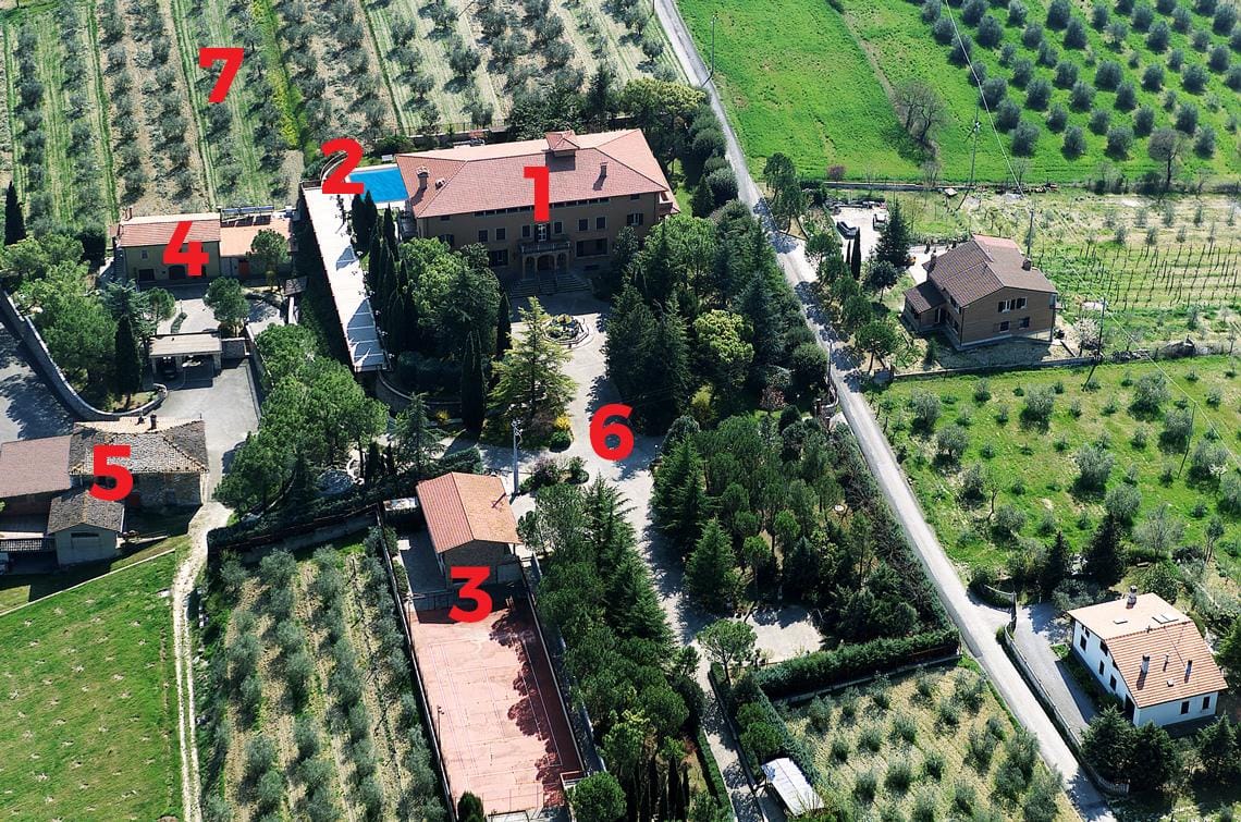 除了这三座建筑之外,还有一个车库和一些游泳池,网球场和周边地区的公园和农业用地。